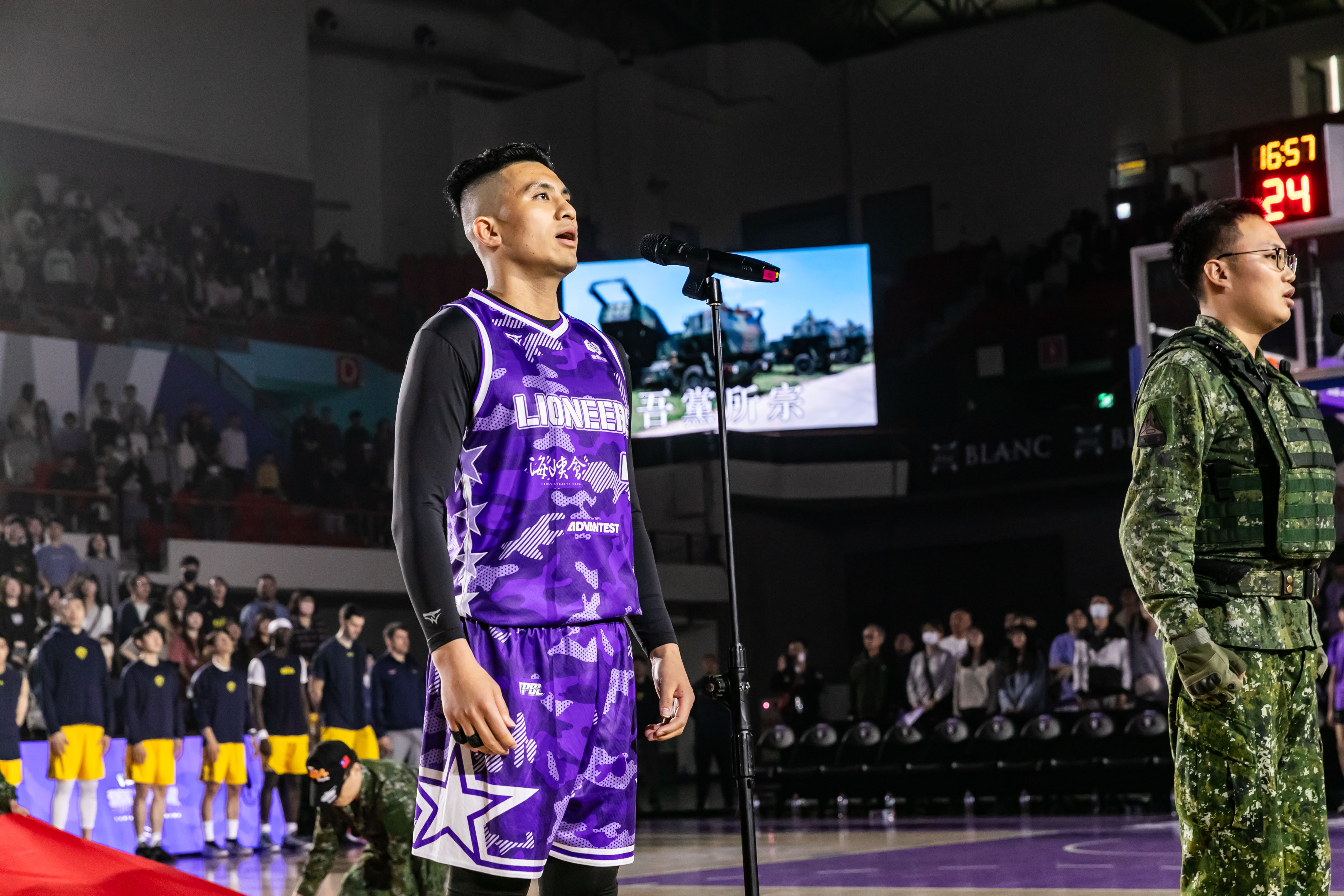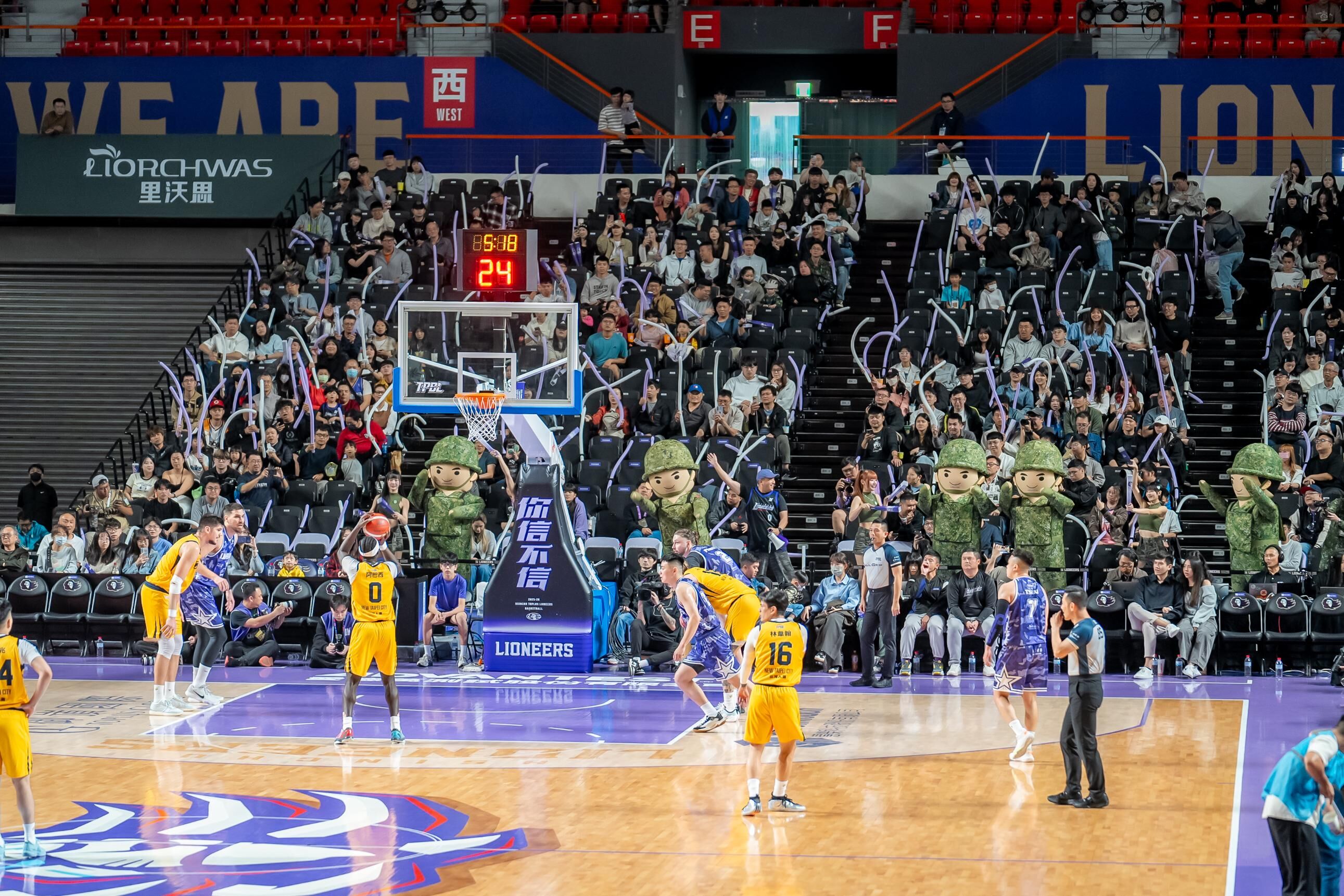 【2026年3月28日】新竹御嵿攻城獅今日於新竹縣體育館迎來隊史首次的「Yes Sir 獅紫軍」主題週,適逢陸軍司令部 80 週年部慶,球團特別與陸軍司令部攜手合作,將全民國防元素融入攻城獅主場。今日賽前由陸軍教準部指揮官孔乃德中將擔任開球嘉賓,為本次Yes Sir獅紫軍開出精彩好球。本場賽事共吸引5,291位獅紫軍進場。今日攻城獅迎戰新北中信特攻,雙方於首節呈現精彩拉鋸戰,攻城獅於第二節打出一波22比5攻勢,一舉將比分反超。易籃後,攻城獅靠著團隊傳導將領先分差擴大至20分。終場攻城獅以103:99擊退中信特攻,成功捍衛主場。